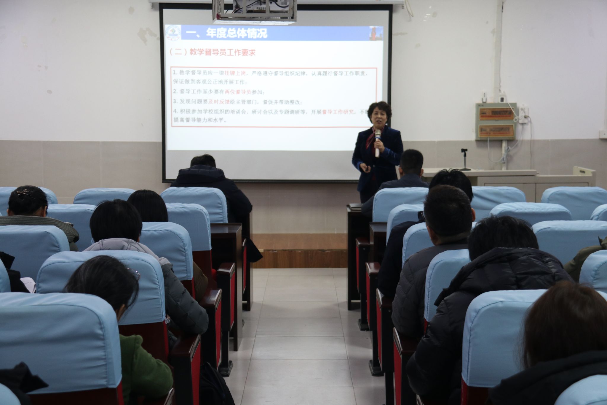 公司督导组组长王元秀教授就2024年度的教学督导工作进行了反馈。她对日常督导活动,包括巡课、听课、巡考等方面,以及专项督导活动,涉及教学大纲、授课计划、试卷、实验实习实践等方面,所存在的普遍性问题进行了详尽说明。同时,她指出了当前教学运行和教学管理过程中所存在的不足,并提出了相应的改进措施与建议。