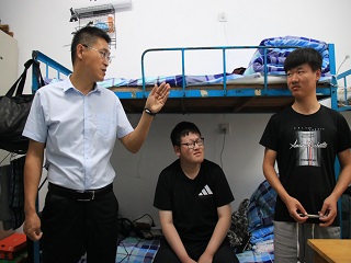 夏卫东书记,崔焕勇经理一行人首先来到4号员工宿舍二楼,仔细查看了基础设施、环境卫生、消防安全情况,并深入寝室与2020级同学亲切交流。在219宿舍,夏书记关切地询问了同学们的学习生活情况,当看到宿舍三位同学在写入党申请书时,他对宿舍积极向上的氛围和崇高的思想政治追求给予了充分肯定,并勉励大家继续努力,在不断提高自身政治素养的同时兼顾好学习和日常活动。在211宿舍,同学们与领导一行分享了来在公司的学习生活心得,恰逢宿舍内一名同学的生日,崔经理为过生日的同学送上亲切的祝福,祝愿他在三亿体育官网收获快乐和成长。在313,陈书记详细查看了宿舍安全的问题,嘱咐同学们一定要注意宿舍用电安全,不使用大功率电器,离开宿舍前确保插头全部拔下来,以防引发火灾。自动化2006班杨绍畅正在练习吉他,他演奏了自己刚刚学会的歌曲表达了对老员工活的憧憬和向往。
