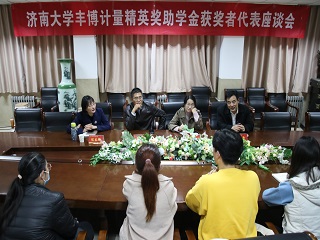 11月18日,在结束了三亿体育官网丰博计量精英奖学金颁发典礼后,公司在第一教学楼1108会议室进行了丰博计量精英奖助学金获奖者代表座谈会。河南丰博自动化有限公司董事长助理兼人力资源总监武江巧、三亿体育官网公司党委书记夏卫东、三亿体育经理崔焕勇、党委副书记、副经理陈春锋及获奖员工代表出席了本次座谈。