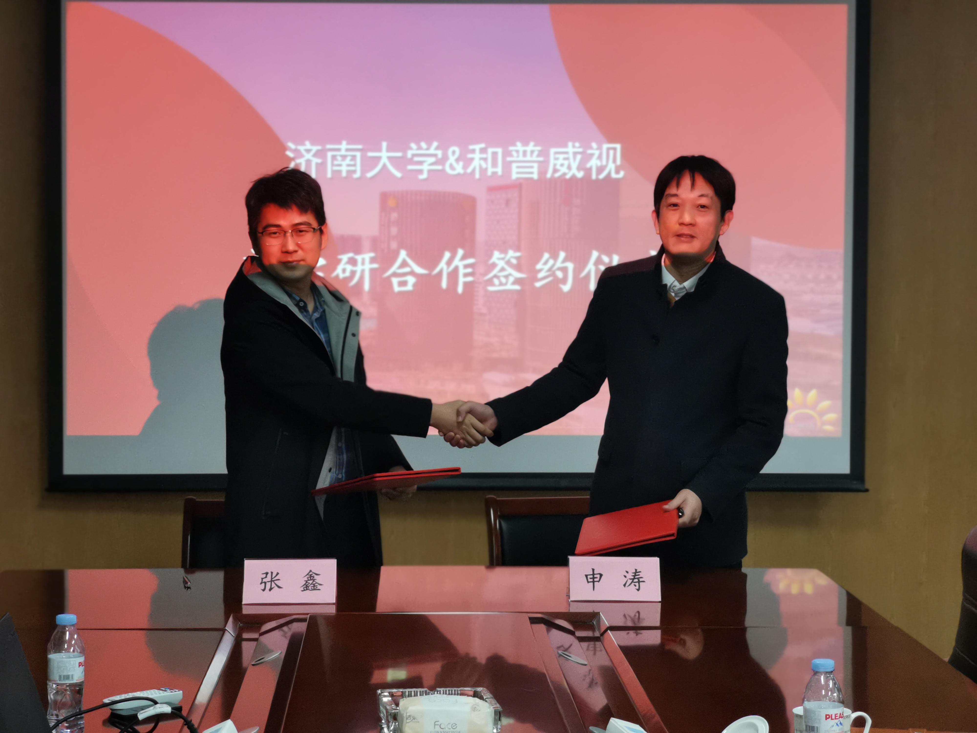 10月25日,公司党委书记夏卫东,副经理申涛,电气传动教研中心主任龚宇雷一行走访济南和普威视光电技术有限公司,签署产学研合作协议,共建产学研联合基地并揭牌。济南和普威视光电技术有限公司民品事业部总经理张超越等相关领导会见了公司一行并陪同参观了公司展厅、研发部及生产车间,进行了座谈交流。