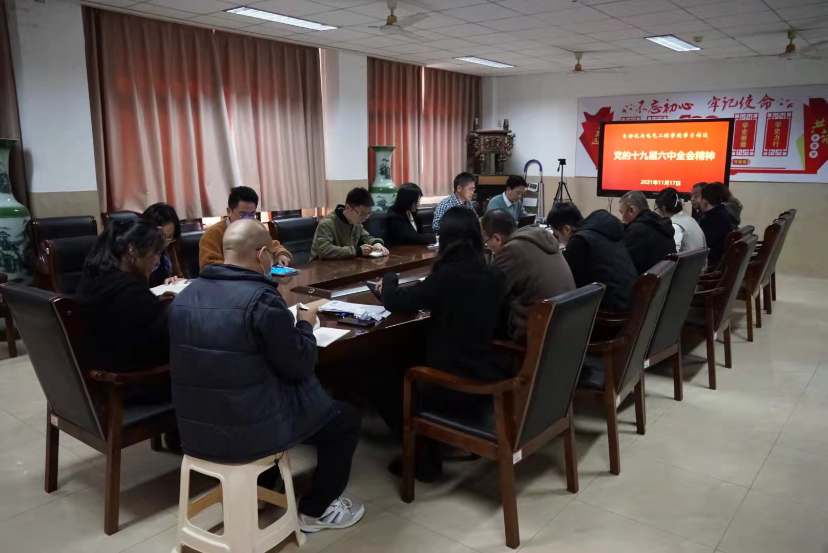 11月17日,按照党史学习教育安排部署,公司党委理论学习中心组专题学习党的十九届六中全会精神。公司党委理论学习中心组成员、各党支部书记、机关支部党员列席了学习会。