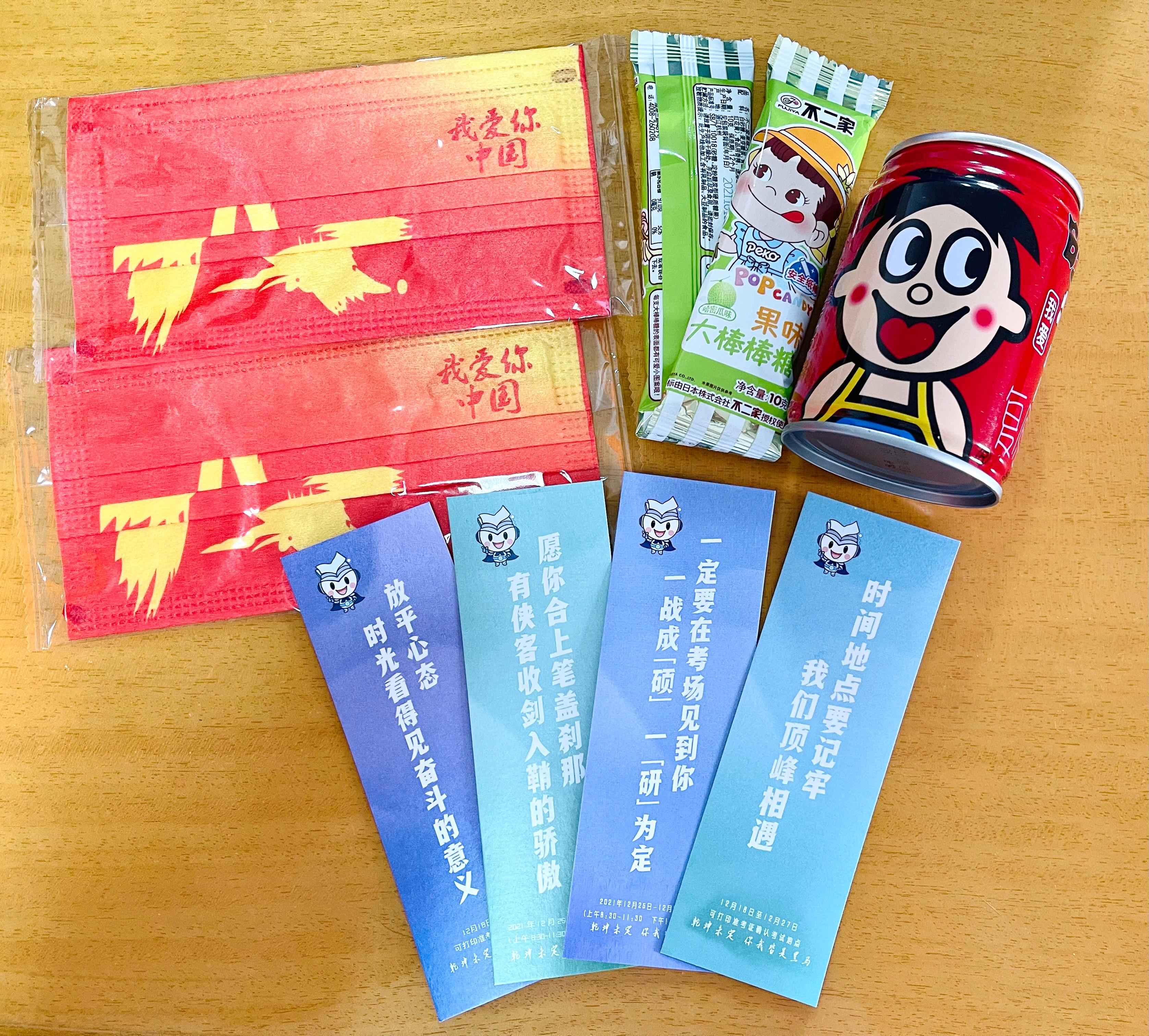活动伊始,陈春锋书记向全体考研员工表达了关切之情,她鼓励同学们咬紧牙关,坚守初心、全力拼搏、不留遗憾,她还提醒同学们复习备考的同时要注意适当锻炼,加强营养,劳逸结合,保持身心健康。随后,赵芳老师代表公司为同学们赠送了“考研大礼包”,中国红口罩寓意“红红火火”,旺仔牛奶寓意“诸事旺旺”,棒棒糖寓意“棒上加棒”,定制书签上印有打印准考证时间、考试时间等考试相关信息,提醒同学们不要忘记关键时间节点。