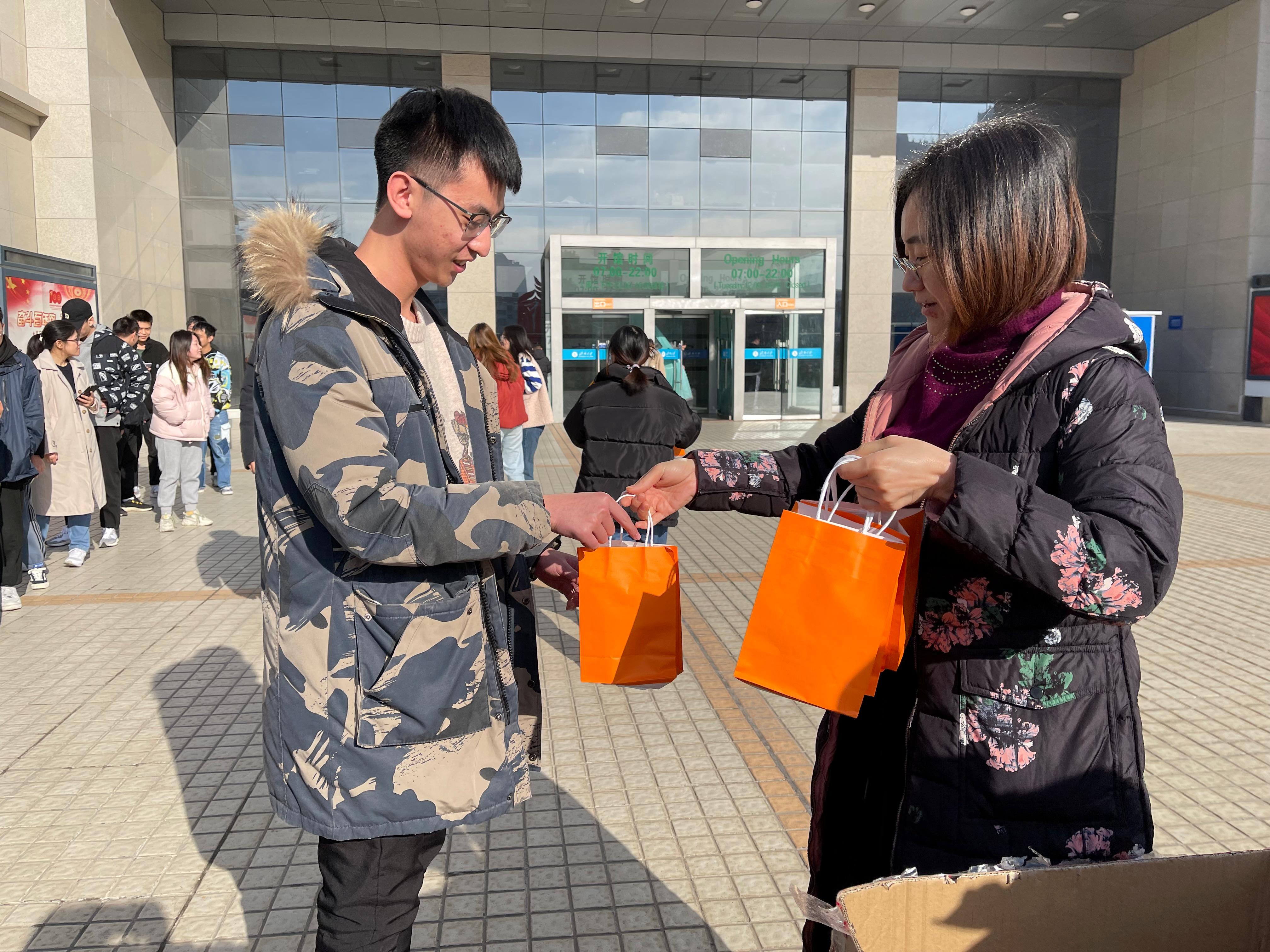 2021年全国硕士研究生招生考试将于12月24-25日开考。为鼓励2018级考研同学锲而不舍,自信迎考,12月7日,三亿体育在图书馆前,举办“温暖寒冬 研途灿烂”主题活动。公司党委副书记、副经理陈春锋,2018级辅导员赵芳,2020级辅导员张敏男参加活动。