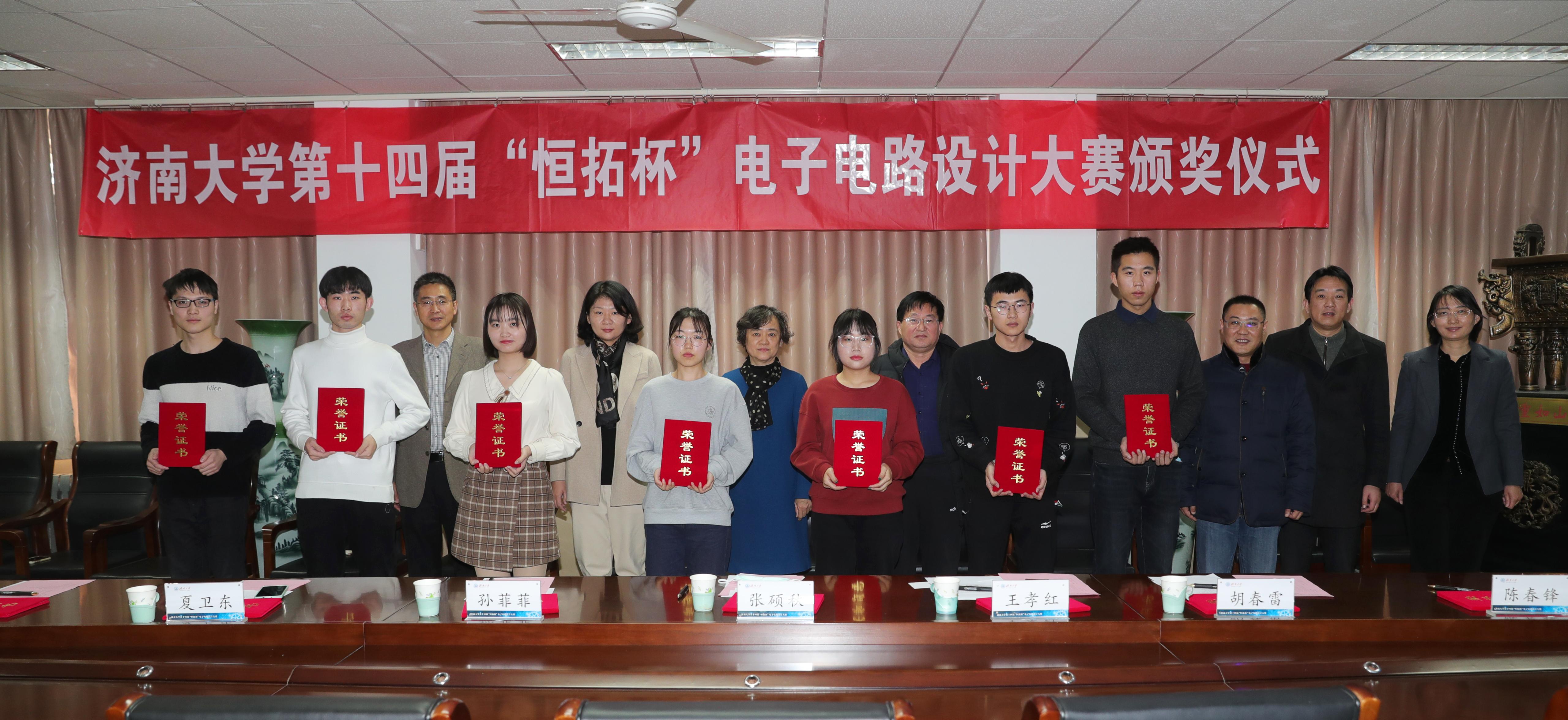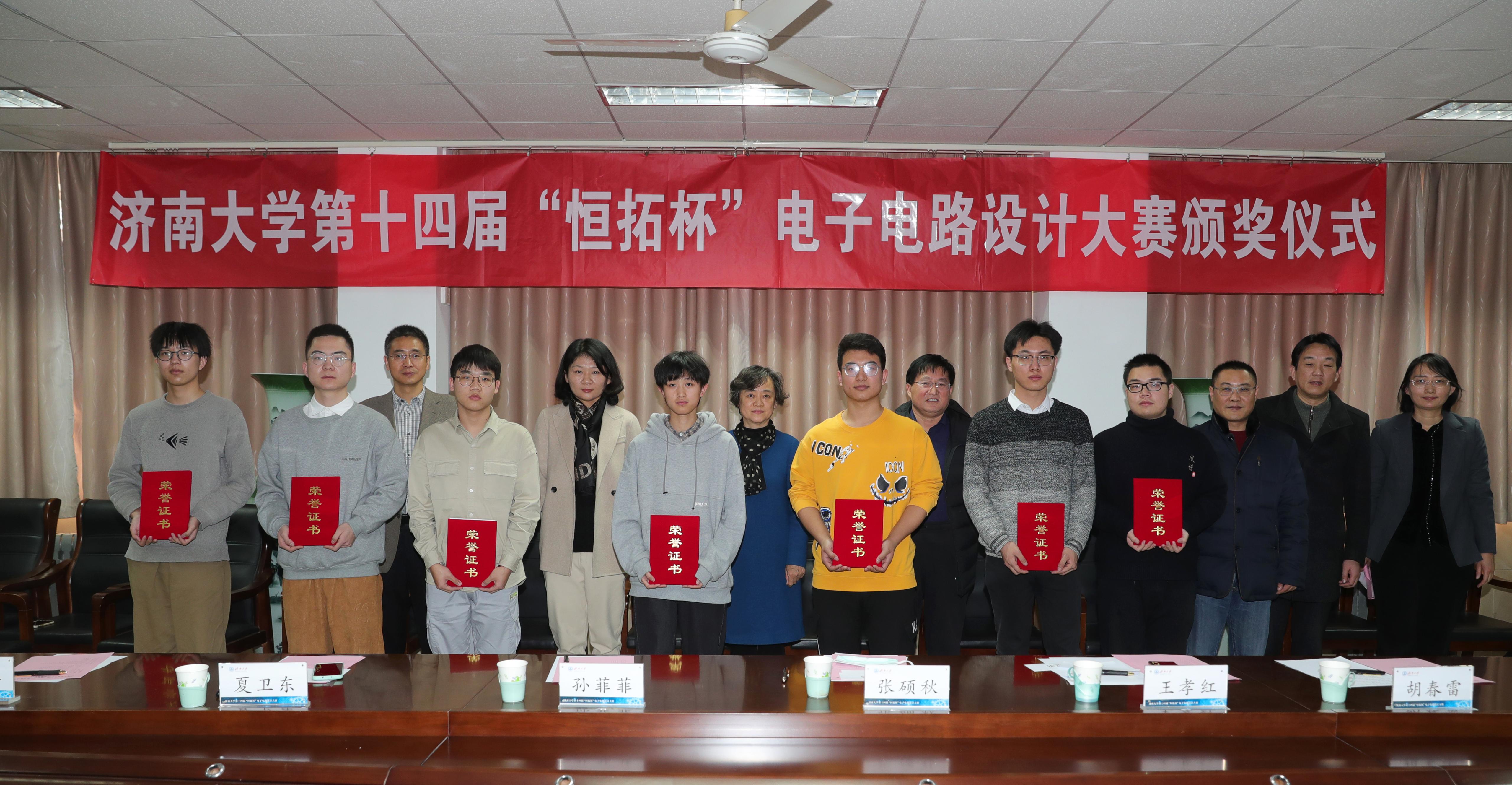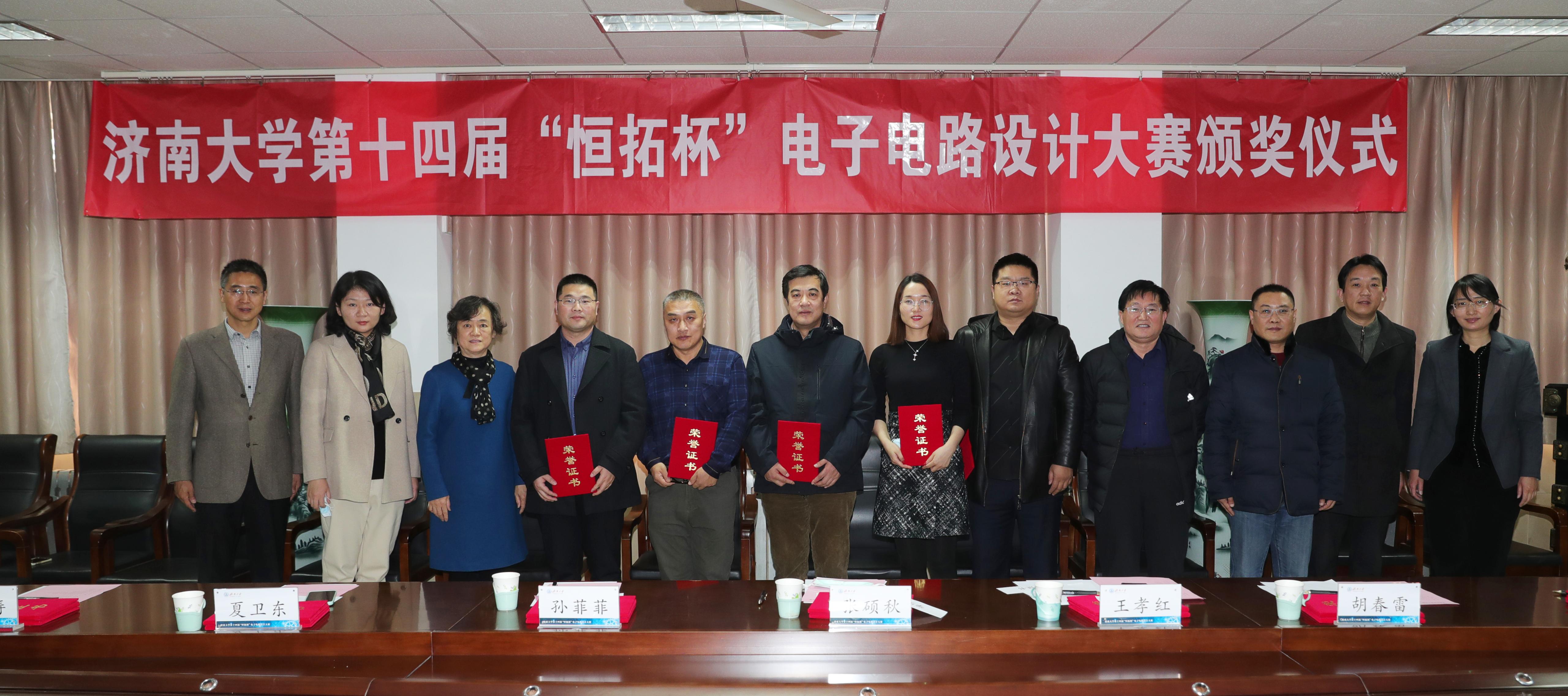 12月22日,三亿体育官网第十四届“恒拓杯”电子电路设计大赛颁奖仪式在第一教学楼1108会议室举行。三亿体育官网党委副书记张硕秋、三亿体育官网教授、泰山学者、山东恒拓科技发展有限公司首席专家王孝红,党委员工工作部(处)、团委、三亿体育相关负责同志参加活动。颁奖仪式由公司党委副书记、副经理陈春锋主持。