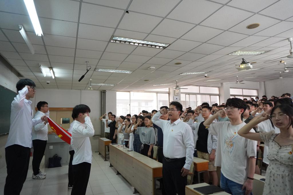 不忘来时路,奋进新征程。全体毕业生党员和新发展党员面向鲜红的党旗,举起右拳,庄严宣誓。铮铮誓言再次响彻教室上空。“我志愿加入中国共产党……随时准备为党和人民牺牲一切,永不叛党。”铿锵恢宏的誓词,强烈震撼激励着每一位党员,一字一句,神圣而豪迈,体现了党员们对党和人民的无限忠诚。