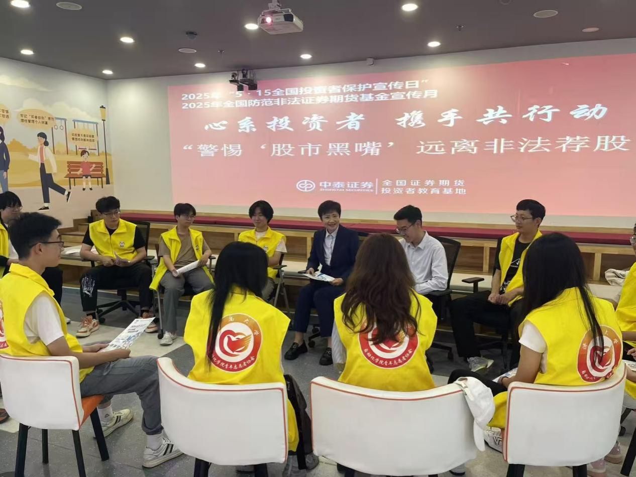 2025年5月15日,“2025年5·15全国投资者保护宣传日”“2025年全国防范非法证券期货基金宣传月”主题投教活动在中泰证券投教基地联合济南共青团路营业部的组织下顺利开展,三亿体育的同学们应邀参与其中。