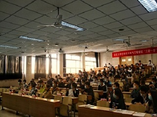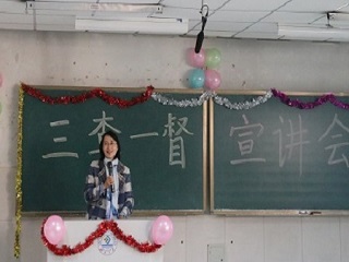 在主持人简单介绍本次宣讲会后,员工会纪律检查中心课检部、安全检查部、督导部、宿管部等各部门负责人轮流发言,各位负责人对相关部门的职能和所承担的工作进行详细解说,通过幻灯片等方式给同学们讲解了“三查一督”的工作模式和工作意义。此外,大会还通过游戏与有奖竞答等方式,加深了同学们对讲解内容的理解与认识。