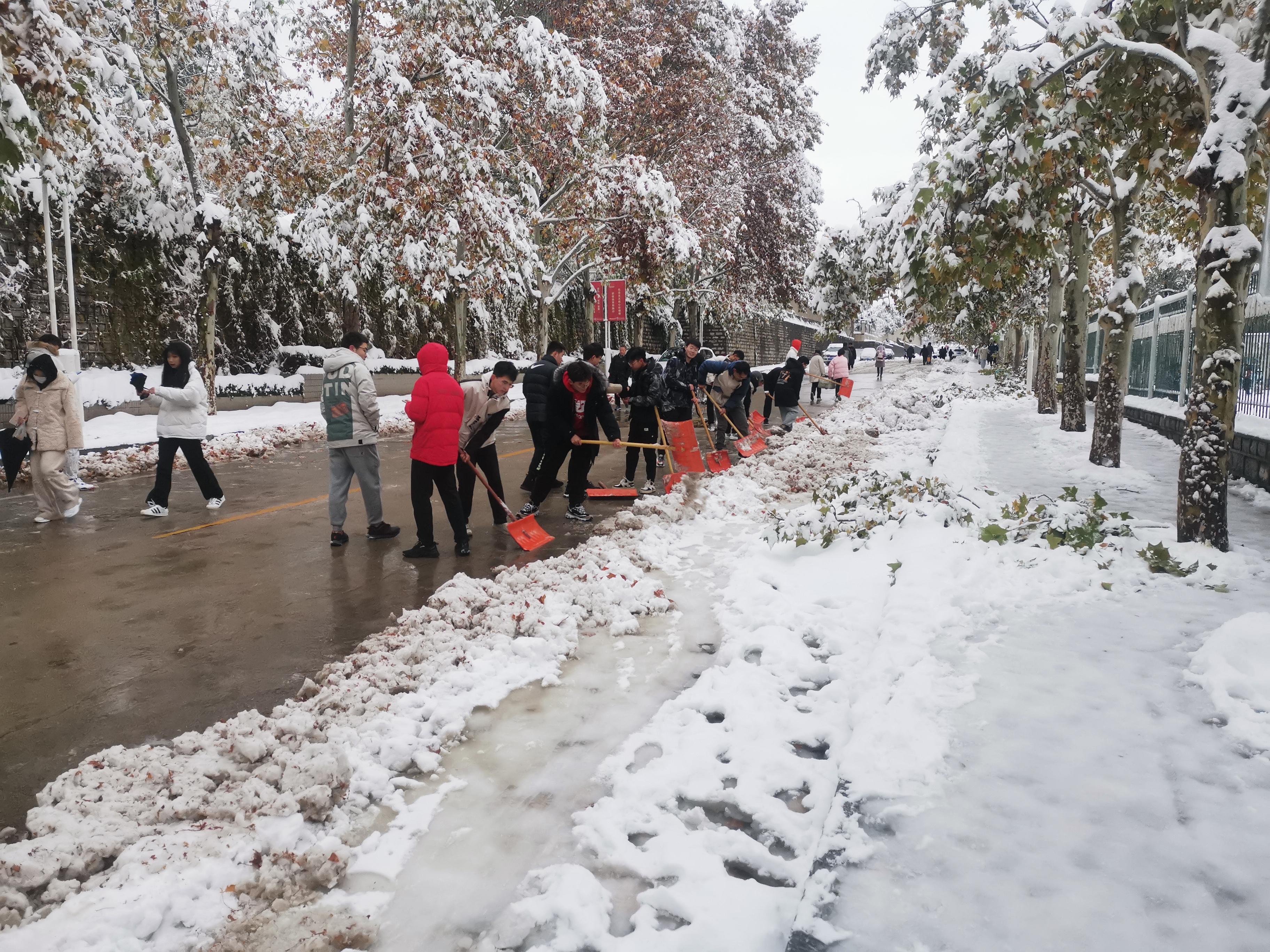 11月7日,济南市迎来今冬第一场降雪,短时间内校园被积雪覆盖。雪后的校园银装素裹,平日里平淡无奇的花草树木在此刻也化作吸引无数师生目光的景点,引得大家纷纷驻足。但在这祥和的氛围中也隐藏着一些安全隐患。由于降雪来得急,来得猛,使得校园道路交通一度陷入瘫痪。在公司老师的领导下,公司志愿者同学们在新西门至北苑操场东侧的主干道上参加了公益铲雪活动。