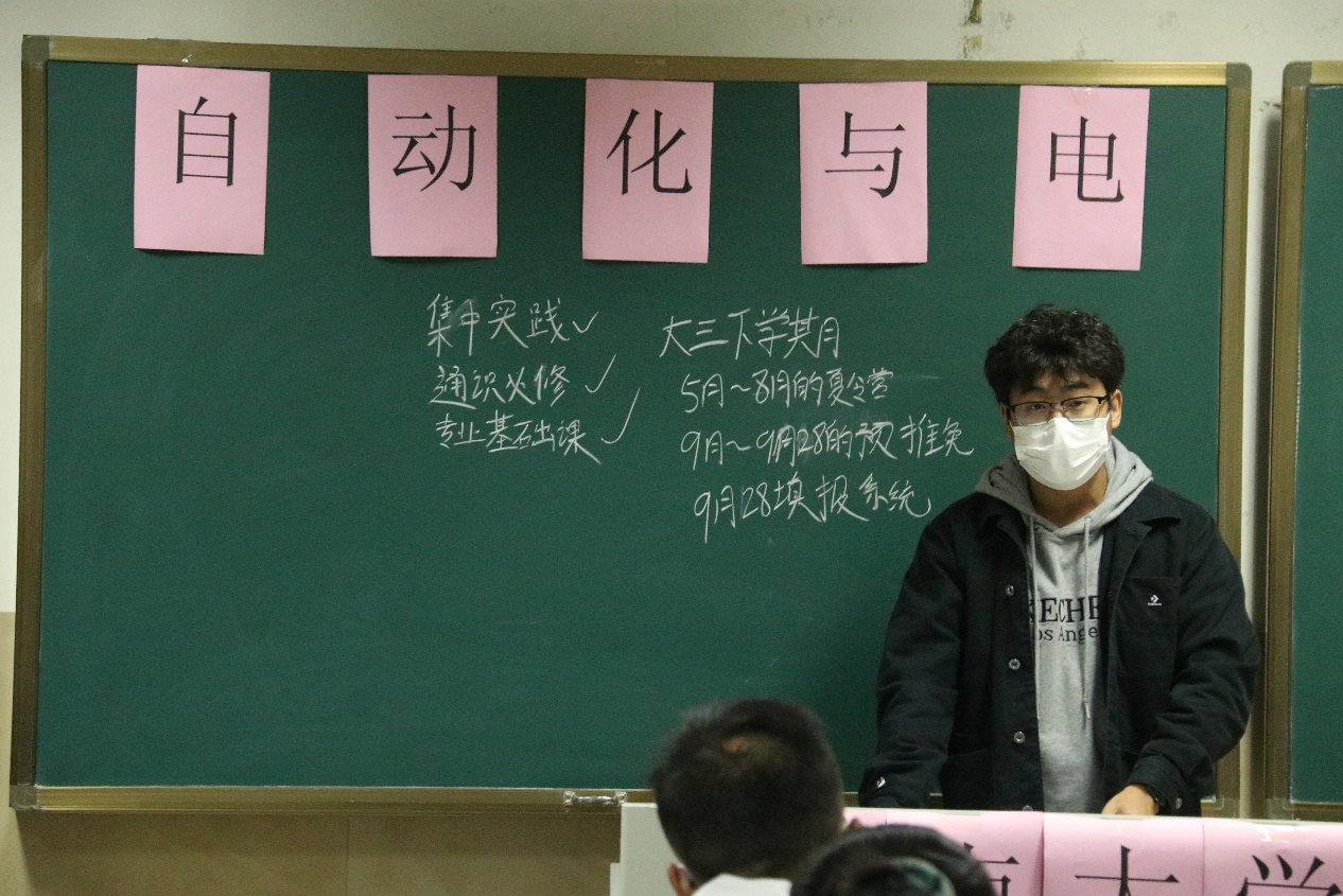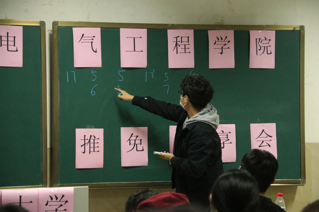 本次活动邀请到了2019级获得推免资格的员工代表,分别是朱鑫鑫和徐志强。其中,朱鑫鑫学长成功推免至山东大学。他首先给学弟学妹们讲了有关推免的基本流程和具体时间点,重点强调了,每位要想要申请推免的同学都需要提前了解推免的流程,做好自己的规划,尤其是新生更应提前寻找一个适合自己的目标,并为之奋斗努力。徐志强学长成功推免至华北电力大学,他从如何准备推免、选取推免公司、选取专业方向、把握复习节奏、提高学习效率等方面向大家传授经验,引导学弟学妹们把握关键点、少走弯路。