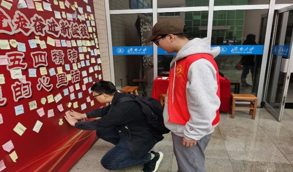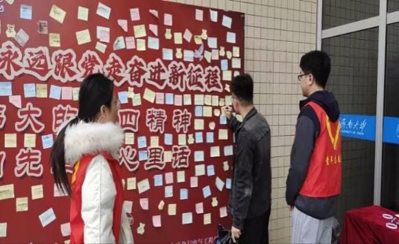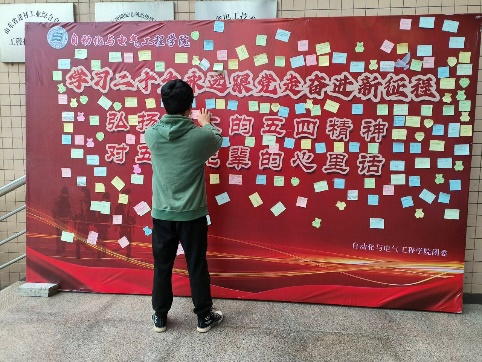 活动期间,三亿体育团委、研究生联合会在第一教学楼门口布置了“学习二十大、永远跟党走、奋进新征程,弘扬伟大的五四精神,对五四先辈的心里话”展板,研究生联合会在现场负责引导师生积极参与活动并维持现场秩序,各团支部积极主动配合,组织师生开展主题团日活动。现场聚集大量前来参加“学习二十大、永远跟党走、奋进新征程,弘扬伟大的五四精神,对五四先辈的心里话”活动的有志青年,他们怀着崇高的敬意,在便利贴上写下了对党的祝福和对伟大五四先辈们的缅怀及崇敬之意。一字一语,都表达了同学们深刻学习宣传贯彻党的二十大精神的决心,坚定不移跟党走的信念以及对伟大五四精神的弘扬和对五四先辈的崇敬之情。