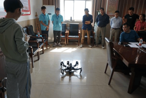 赛现场,各参赛队伍通过演示PPT、播放视频、实物展示等多种方式向评委老师展示自己的机器人设计原理和成果。评委老师就作品的技术创新点(尤其是关键核心技术创新点)、应用价值和前景、成果转化可行性等方面进行打分,并对各个作品提出进一步修改的意见和建议,帮助选手更好的完善参赛作品。
