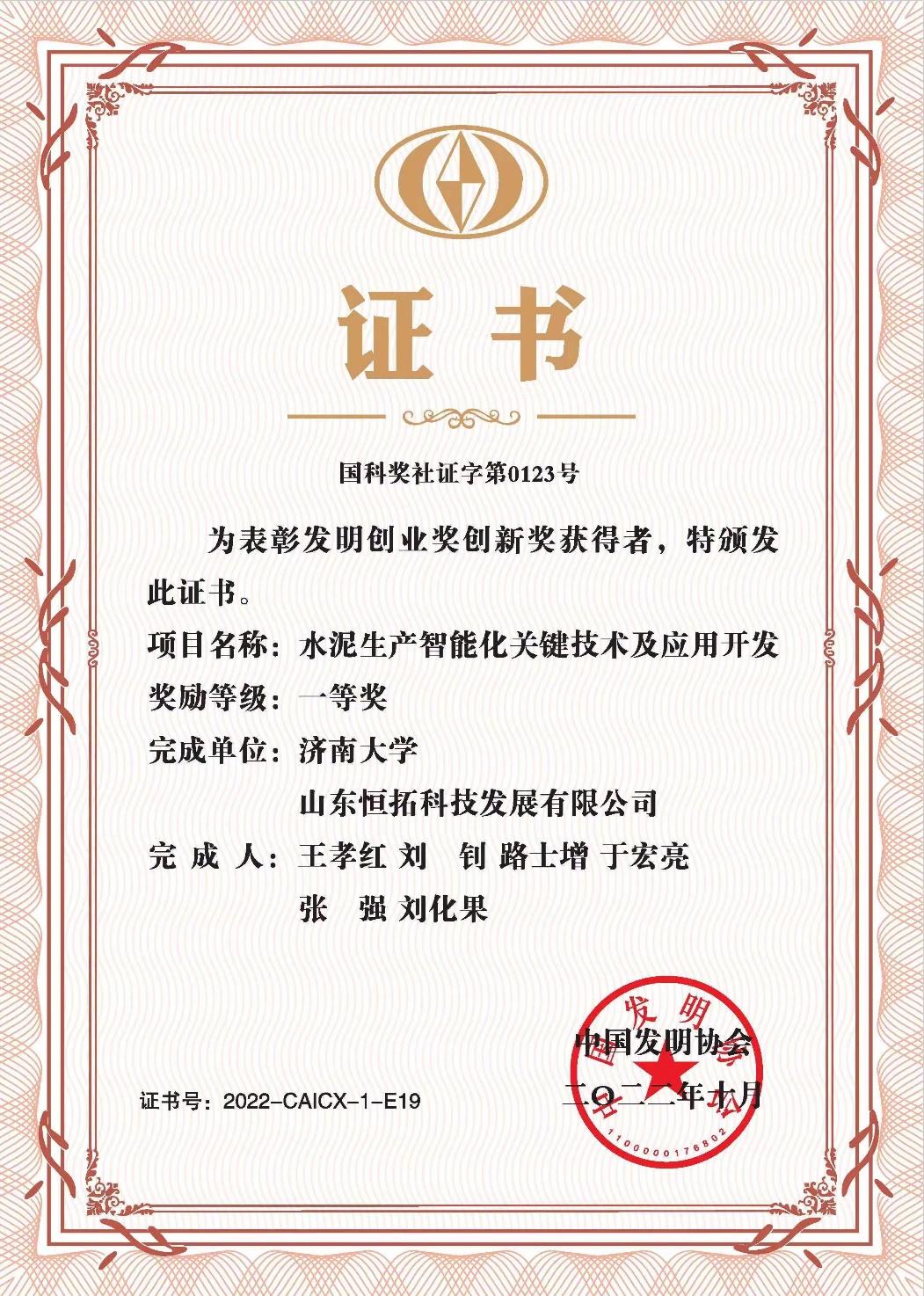 近日,中国发明协会公布了2022年度发明创业奖·创新奖名单,由济南大学牵头申报的“水泥生产智能化关键技术及应用开发”项目,荣获2022年度中国发明协会发明创业奖·创新奖一等奖,自动化与电气工程公司王孝红教授为项目第一完成人。