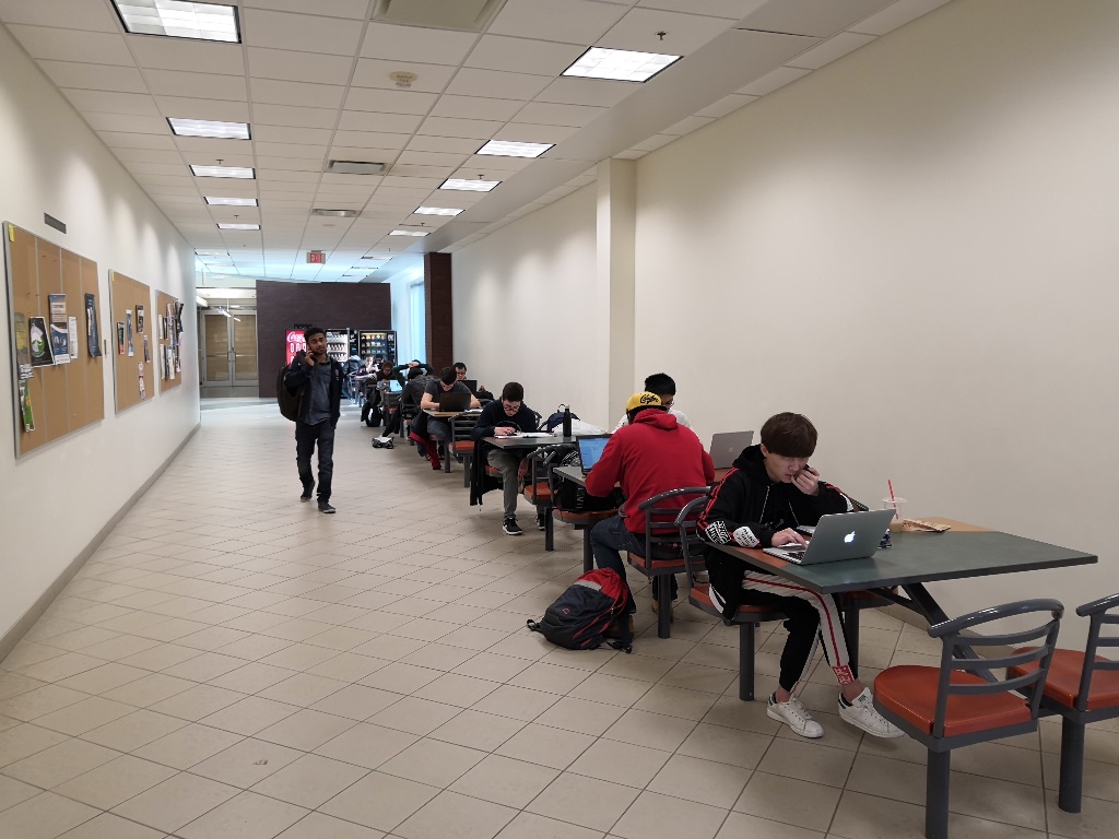 Fig.9 校园的餐厅、走廊经常能见到员工在一起讨论完成作业的场景