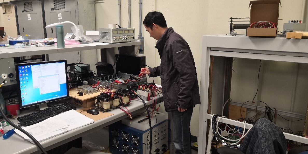 李老师在电力电子实验室为每个人准备了一个实验台,并配备了实验所需的基础仪器和设备。每位研究生和博士生根据自己研究的不同,购置相应的设备和材料,搭建自己的实验平台。这里说实话,很多时候他们并没有我们想象的特别先进的设备,多是根据自己的研究方向对常规设备的改造,并通过方法和手段创新,取得了一系列成果。虽然进入实验室的员工不需要签到,也没有实验管理员监督,但实验室整洁有序,所有员工都非常安静,讨论问题声音也很小,并且非常珍惜所用的实验设备和实验环境。这体现了员工的综合素质和对实验研究的热情。