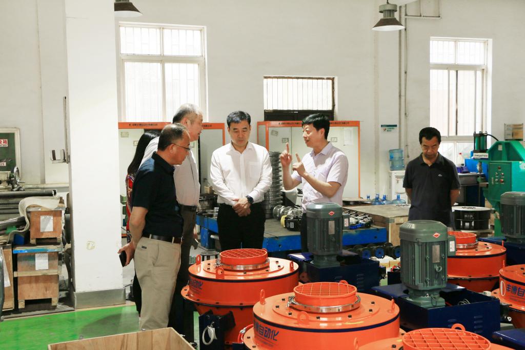 集团一行实地参观了员工企业河南丰博自动化有限公司的高精度动态计量产品生产工厂和正在建设中的国际精密计量和物联网产业园(计量·硅谷)项目。详细了解企业主要产品科里奥利秤系列主营产品的运行原理、秤体结构、型号种类,市场上应用情况,观看了丰博自主研发的精度试验装置。了解了企业未来的规划和布局。公司87级自动化专业员工、河南丰博自动化有限公司董事长杨德柱亲切接待了母校老师一行。杨董事长对母校老师的到来表示诚挚的欢迎,他详细介绍了公司的发展历程、主要产品以及技术研发、人才引进等企业需求。表示:“科技和人才是丰博发展的两大助推器。企业与母校有着广阔的合作空间。” 员工工作办公室杨延鲁主任介绍了母校发展现状,表示员工是公司发展最值得信赖与依靠的力量,通过深入考察交流,有利于促进产学研有机结合、满足人才培养供应、加深科研资源共享,实现公司与员工企业互惠互利、合作共赢、共同发展的目标。崔焕勇经理介绍了公司的人才培养、团队建设、实验室条件等情况,王中华副经理围绕员工企业的发展需求,重点介绍了公司的专家和科研成果以及公司开展校企合作的经验模式。双方围绕人才培养、科研合作等内容进行了深入交流,就共建实习就业基地、创新实验班和产业研究院,以及设立奖助学金项目、员工创新项目等事项达成合作意向。