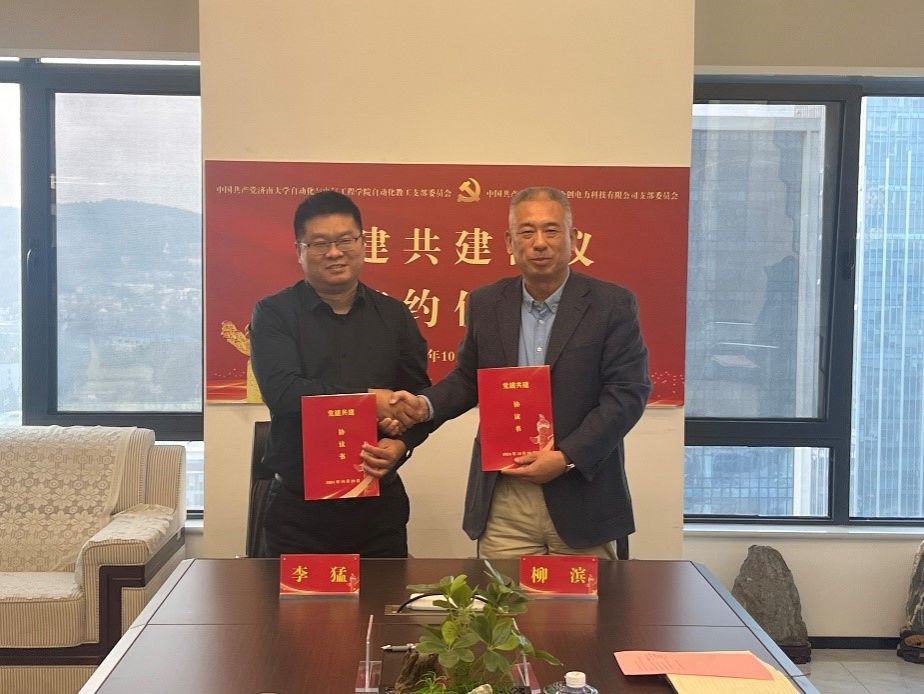 2024年10月29日,在济南荣耀合创电力科技有限公司,自动化教工党支部与济南荣耀合创电力科技有限公司党支部举行党建共建签约仪式。公司党委书记李祥印、经理申涛、自动化教工党支部书记李猛,荣耀合创公司总经理魏欣、副总经理王秀广、党支部书记柳滨等参加签约仪式。荣耀合创电力科技有限公司党支部书记柳滨主持签约仪式。