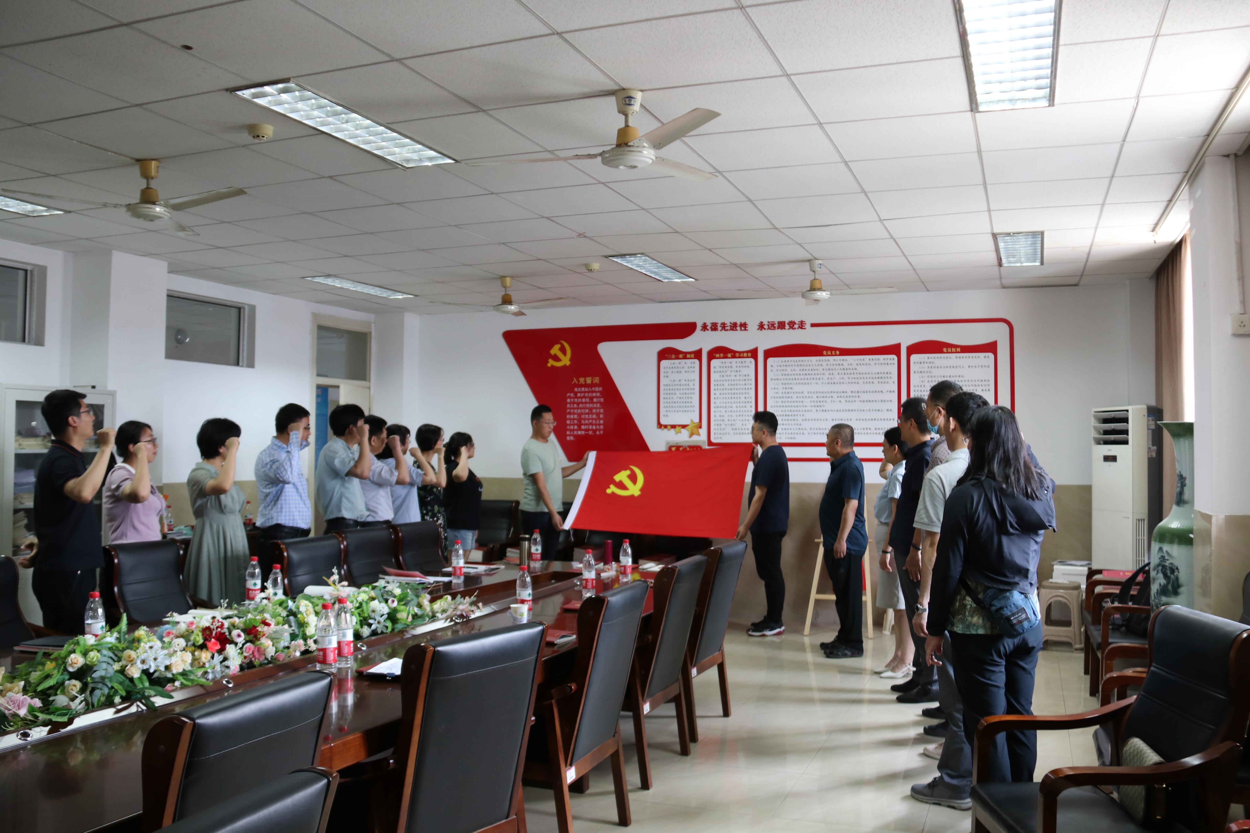 最后,全体与会党员面对鲜红的党旗,重温了入党誓词。